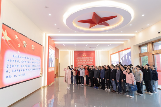 全體黨員來到展館大廳。在莊嚴肅穆的氛圍中,全體黨員整齊列隊,面向鮮紅的黨旗,莊嚴舉起右手,重溫入黨誓詞。鏗鏘有力的誓言在展館內(nèi)久久回蕩,充分彰顯了黨員們對黨的無限忠誠和為共產(chǎn)主義事業(yè)奮斗終身的堅定決心。